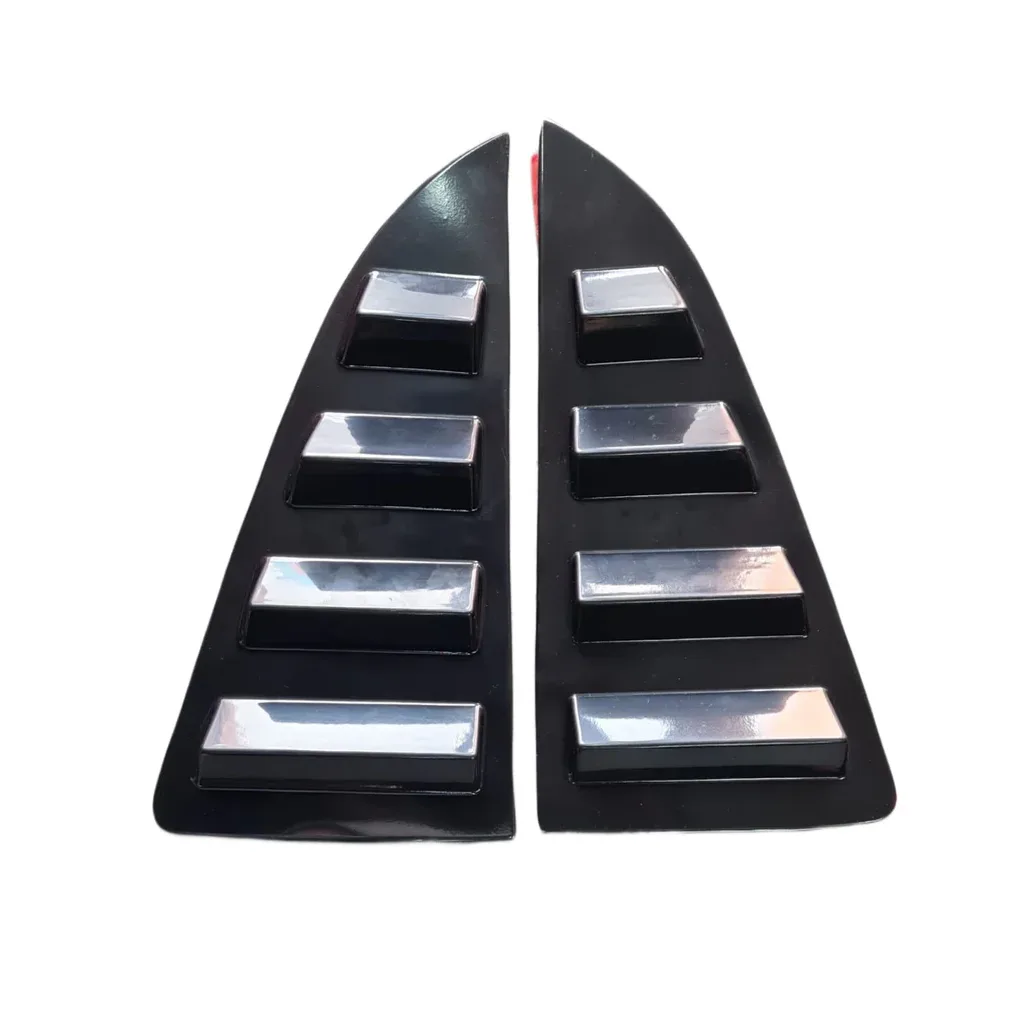 VW Polo 6 Window Louver (4 Slot) is a plastic, aerodynamic cover for the rear quarter window, enhancing sporty aesthetics with a modern look, providing some sun/glare reduction, and protecting the glass, usually made of ABS plastic, available in gloss black or carbon fiber look, and easily installed with pre-applied adhesive tape for various Polo generations (2009-2023+), fitting most 4-door hatchbacks.